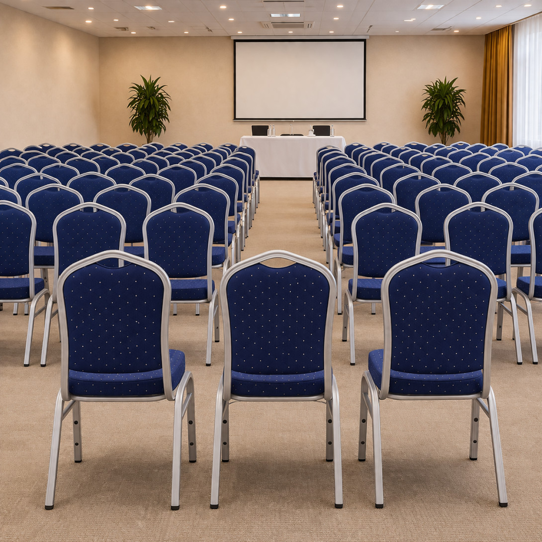 Farbe: grau/ blauHALLSEAT Stühle sind elegant, massiv, haben eine lange Lebensdauer und sind auch günstig. Sie sind ideal für den intensiven Gebrauch und eine geeignete Lösung für Bankett- und Konferenzräume, Hotels oder Restaurants. Der Vorteil ist, dass die Stühle stapelbar sind, deswegen kann man auf kleinem Platz lagern.