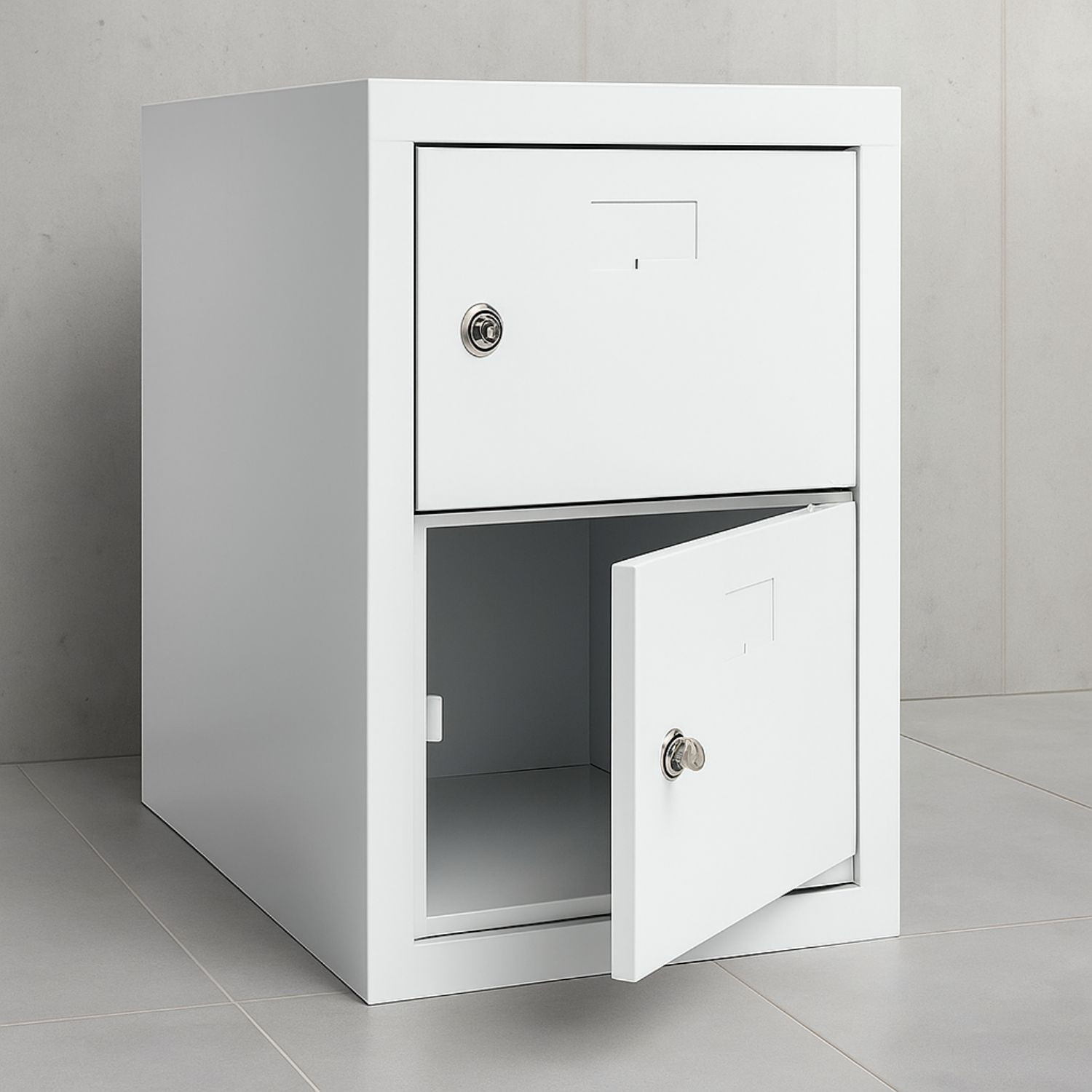 - Gegen Aufpreis möglicherweise Schloss mit Vorhängeschloss bestellen, mit mechanischem, eletronischem Schloss (mit Codeöffnung), Münzpfandschloss oder Karte.