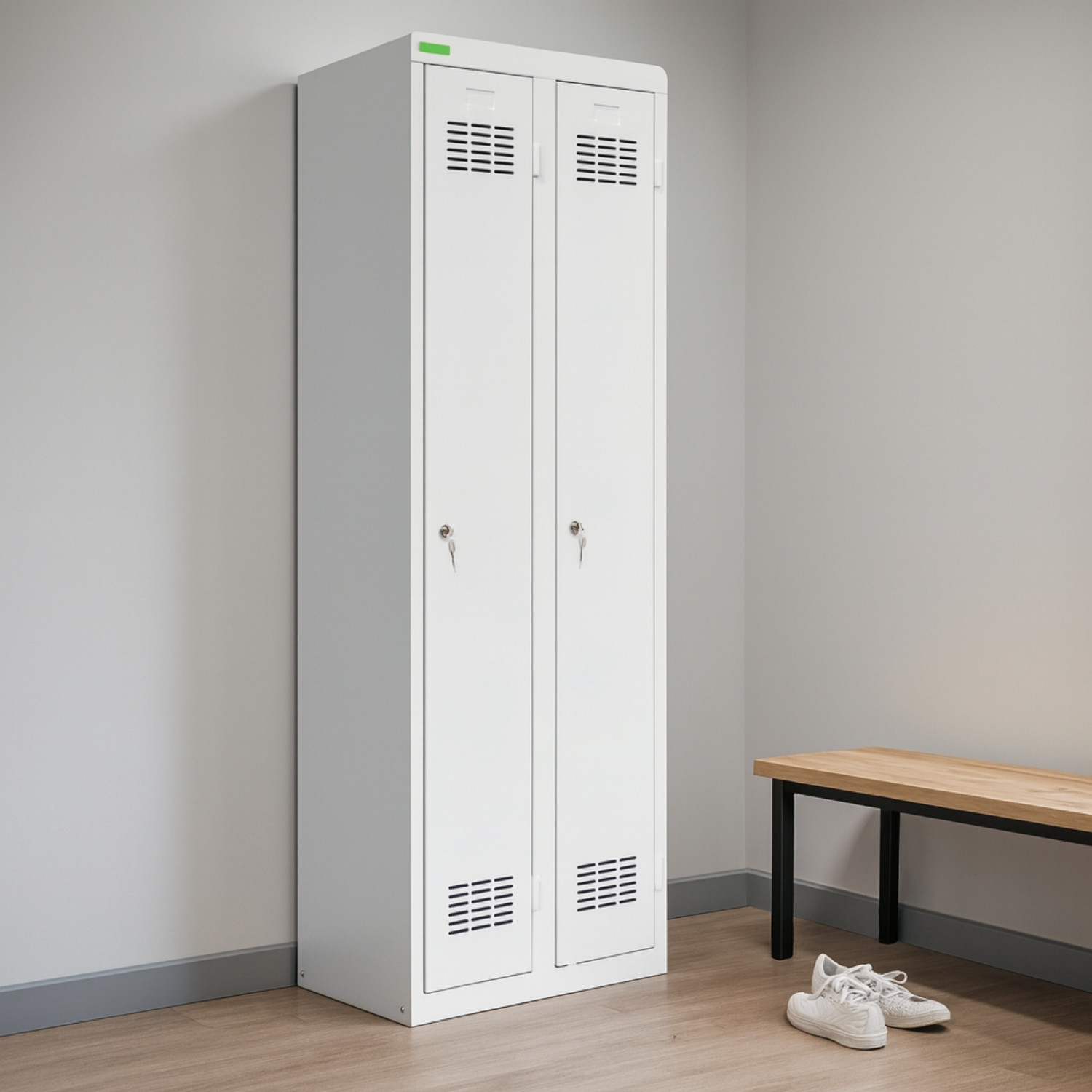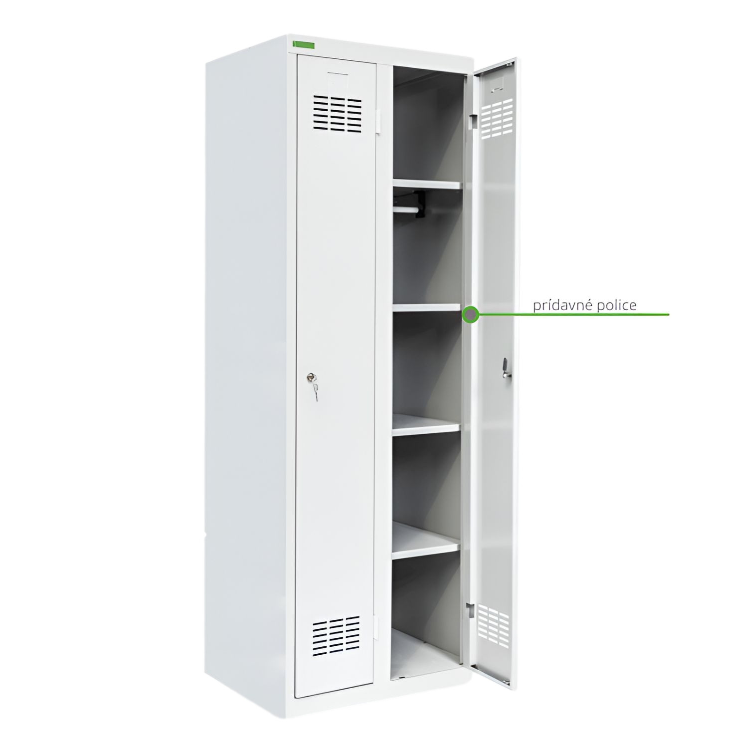 - Grundausstattung: Hutablage, Kleiderstange, Handtuchhalter, Spiegel, Haken zum Aufhängen von Kleidung, niedrigere Sockel für mehr Platz im Schrank, Lüftungsöffnungen im oberen und unteren Teil der Tür, Sicherheitsschloss (mit 2 Schlüsseln)