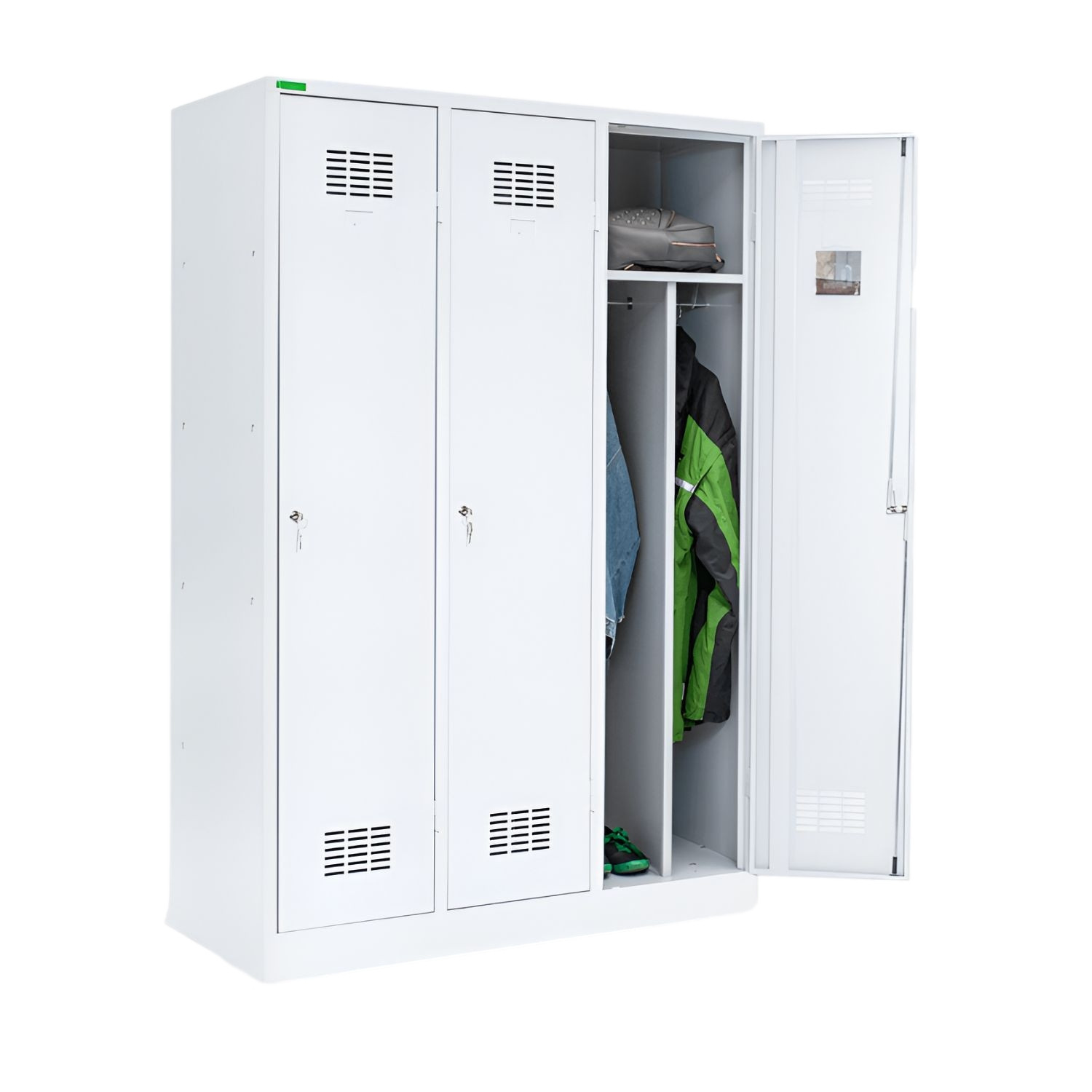 - Grundausstattung: Hutablage, Trennwand, Kleiderstange, Kleiderhaken, Türschlitze, Sicherheitsschloss (mit 2 Schlüsseln), niedriger Sockel für mehr Platz im Schrank.
