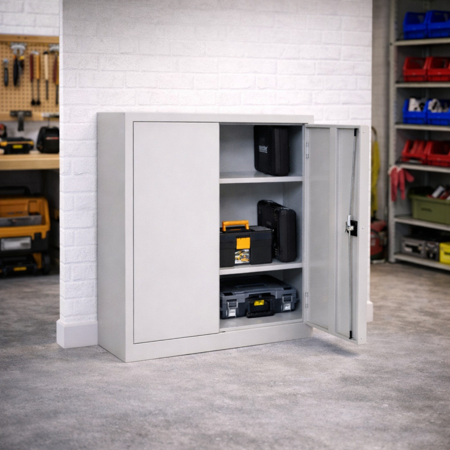 - Höhe: 1000 mm, Breite: 1000 mm, Tiefe: 420 mm Anzahl der Regale: 2