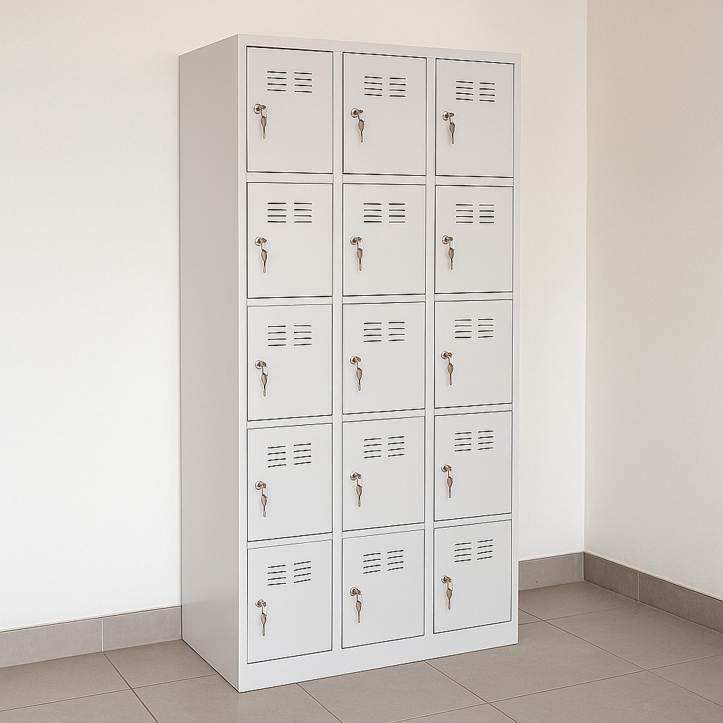 - Standardfarbe: RAL 7035 / lichtgrau, RAL 5012 - Türen sind blau