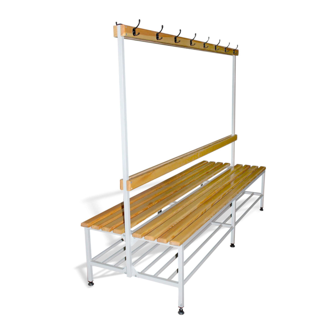 Doppelseitige Garderobenbank mit Rückenlehne und Kleiderbügeln, 2000 mm lang, mit Schuhablage