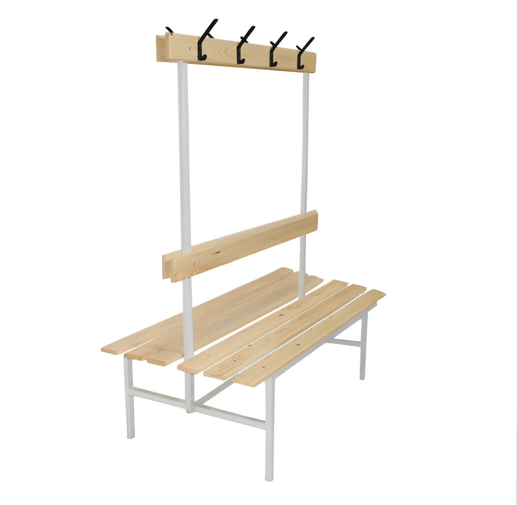 - Umkleidesitzbank doppelseitig mit Rücklehne und Haken, Lange 1000 mm.