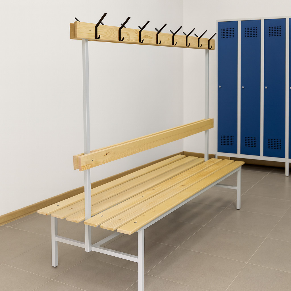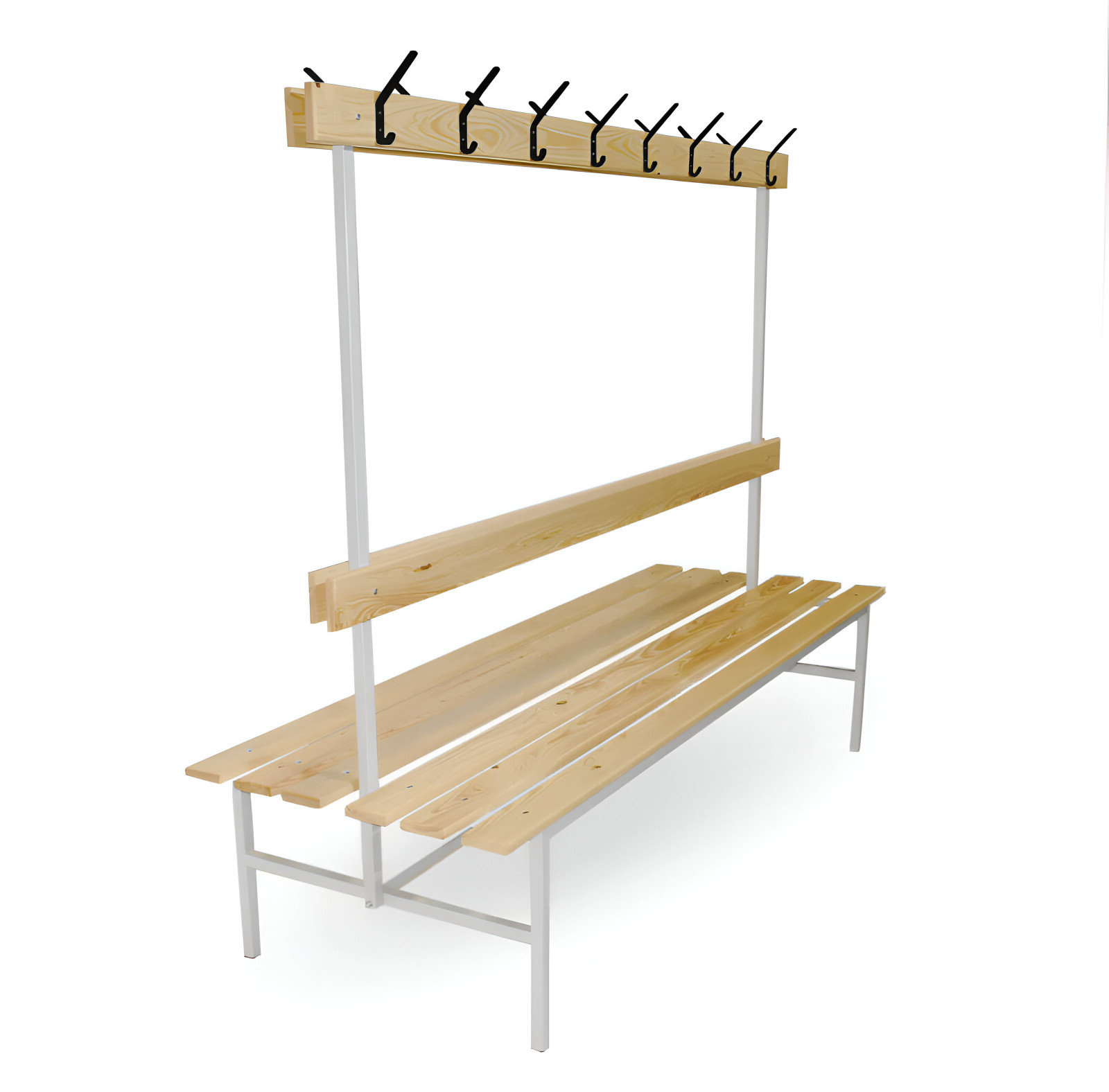 - Umkleidesitzbank doppelseitig mit Rücklehne und Haken, Lange 2000 mm