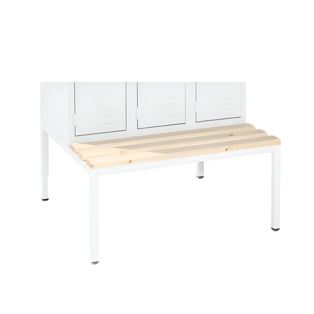 Unter Hygiene- und Ordnungsgesichtspunkten bieten Einbaubänke eine ideale Lösung. Mitarbeiter haben immer einen Sitzplatz, sie haben genug Platz für bequemes Umziehen. Die Reinigung unter dem Kleiderschrank ist einfach. Die Einbaubank kann auch mit einer Ablage für Schuhe bestellt werden, die eine systematische Aufbewahrung der Schuhe ermöglicht.