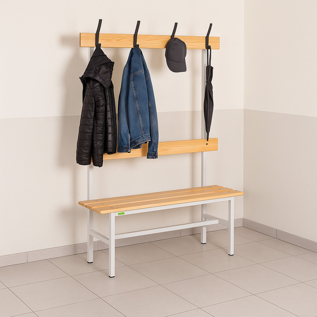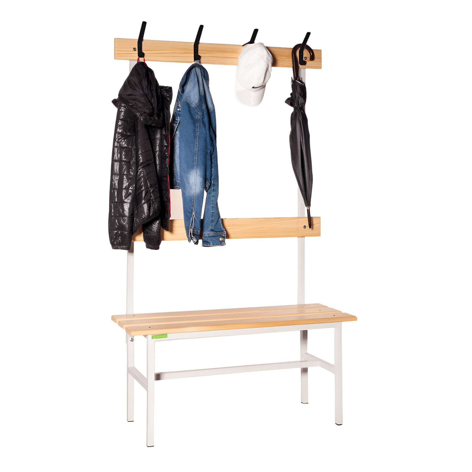 Umkleidesitzbank mit Rückenlehne, mit Hakenleiste 1000 mm