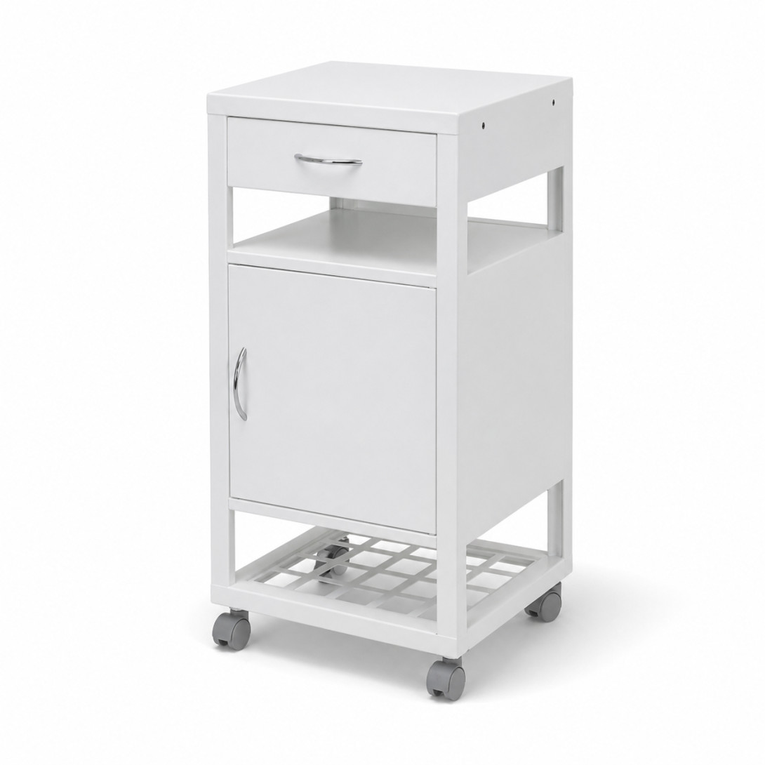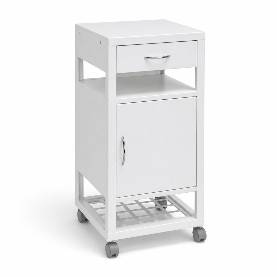Der mobile Metallnachttisch BEDSIDE CAB H WE in elegantem Weiß (RAL 9010) ist eine praktische Lösung für Krankenhäuser, Pflegeheime und andere Gesundheitseinrichtungen. Die robuste Metallkonstruktion und die hochwertige Pulverbeschichtung garantieren Langlebigkeit, Robustheit und einfache Pflege.