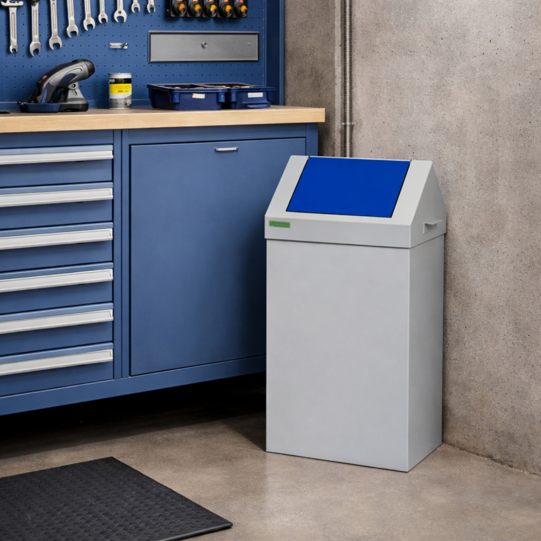 Abfallbehälter mit blauem Deckel für Mülltrennung