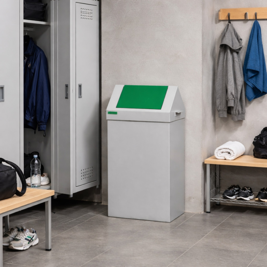 Abfallbehälter mit grünem Deckel für Mülltrennung
